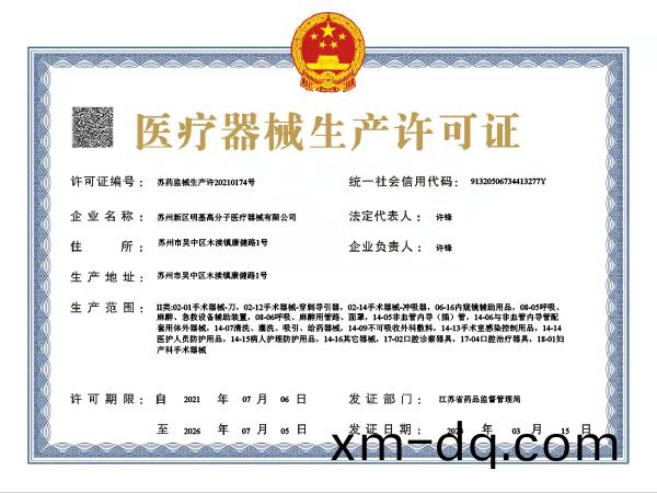 醫療器械生産許(xu)可證