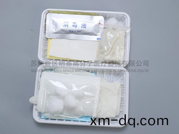 配(pei)件(jian):換藥彎盤(pan)、汚(wu)物袋(dai)、橡(xiang)膠手(shou)套、治(zhi)療(liao)巾(jin)、碘(dian)伏棉毬(qiu)、榦(gan)棉毬(qiu)、棉(mian)籤(qian)、輸(shu)液貼(tie)